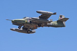 As typical Argentinian as tango are the FMA IA.58 Pucaras. Flown by Grupo Aéreo 3 de Ataque from Reconquista, Santa Fe, five of these turboprops took part in Ceibo 2005. A-504 seen here has been decorated with a badge commemorating the type's 30th year of service with the Fuerza Aérea Argentina. A modernisation programme for the Pucara, named for a native Argentinian fortress, is now underway. |