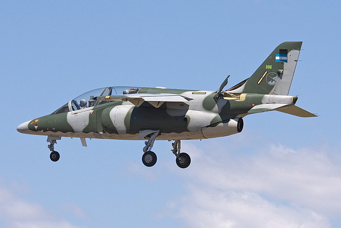 In European exercises, the Italo/Brazilian AMX is just the AMX. Not a very modern fighter bomber, but it will do. In Latin America however, Brazil's AMX or A-1as the type is known in the Brazilian Air Force constitutes a by comparison very modern ground attack platform. The Brazilian Air Force despatched five AMX's, one of which was an AMX-T (A-1B) twin seater from its 1°/10° Grupo de Aviaçao from Santa Maria to Mendoza. The other four were of the single seat A-1A variety as seen here. Note the new green/grey camouflage scheme.