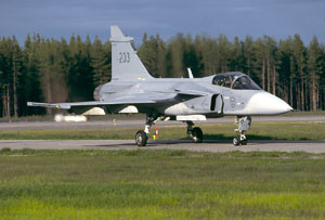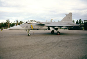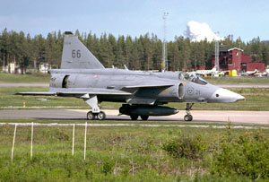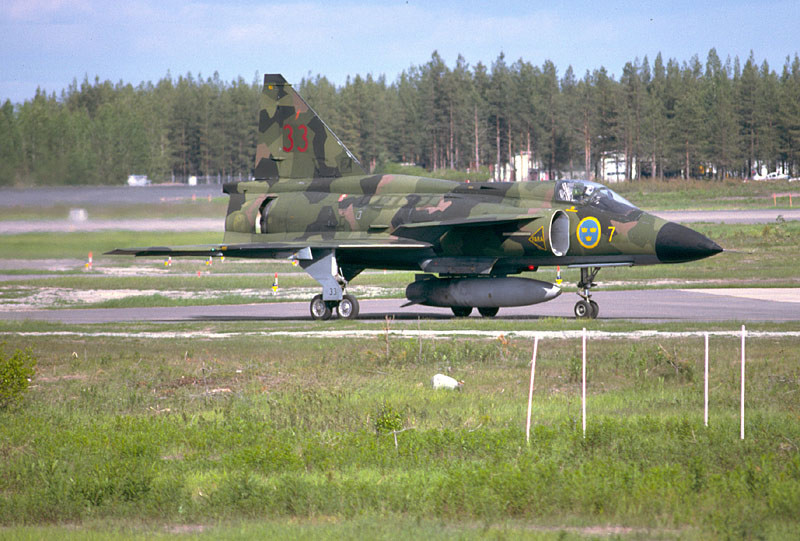 The annual Swedish Air Force Open House for 2003 took place at Luleå-Kallax Air Base. Kallax is Sweden's moth northerly situated base and is only a few tens of miles removed from the Arctic Circle. Hence the title of Midnight Sun Air Show as the sun never sets during this time of the year. The base is home to F21 Norrbottens Flygflottilj of the Flygvapnet as the Swedes call their Air Force. F21 operates two squadrons, one fighter squadron known as the 2. JAS Division (Fighter-Attack-Recce squadron) with the new SAAB JAS-39 Gripen, the other known as the 1. Spaningsdivision (recce squadron) with the older SAAB AJSF-37 and AJSH-37 Viggen. Being situated so far north in a lightly populated area also meant that the air show had the atmosphere of a village festival, a welcome change from some of the overcrowded events elsewhere in Europe. Despite the isolated location of Luleå some non-Swedish aircraft had made it to the Midnight Sun Air Show, including a pair of USAFE F-15E's. Below a selection of the participants in thid most northerly military event of the 2003 calendar.