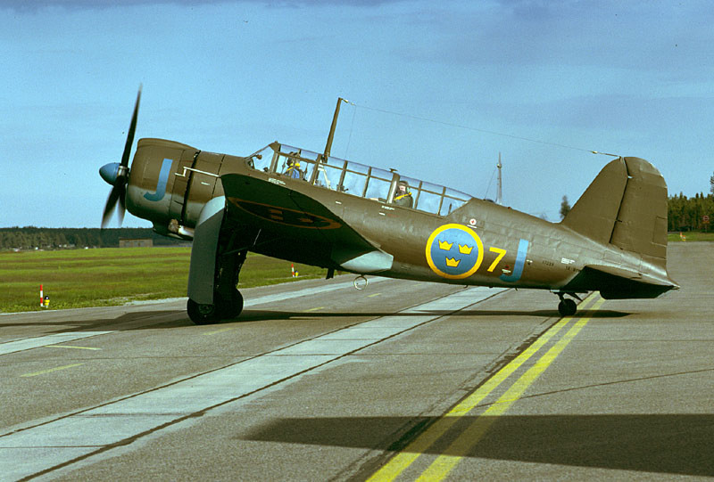 From the very new to the very old; a SAAB B-17 taxies past the crowd on it's way to Luleå-Kallax's runway. Not to be confused with Boeing's B-17, the SAAB B-17 was nevertheless from the same 1940's era. It was a dive bomber that served in the Flygvapnet until the late 1940's. 17239/J is known as SE-BYH on Sweden's civil register and is the only one left flying in the world.