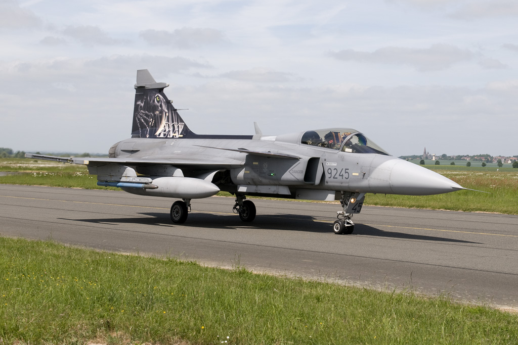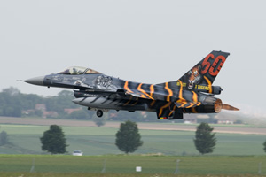 Three F-16's from three different countries. To the left, F-16AM FA-87 from the Belgian Air Component's 31 Smaldeel can be seen taking off, with a Portuguese F-16AM from Monte Real's Escadra 301 taxiing out in the centre image. A Probationary Member at the time of writing is the Polish Air Force's 6 Fighter Squadron from Poznan-Krzesiny. One of the unit's F-16C Block 52+'s which replaced Sukhoi Su.22M-4's not so long ago can be seen landing to the right. Note the badly chipped Tiger decoration on the jet's fin. The Belgians did not take part this year due to commitments having to do with NATO's operations over Lybia. FA-87 had been at Cambrai for the air show at nearby Cambrai-Niergnies.