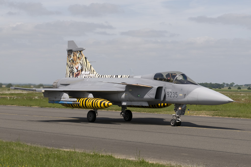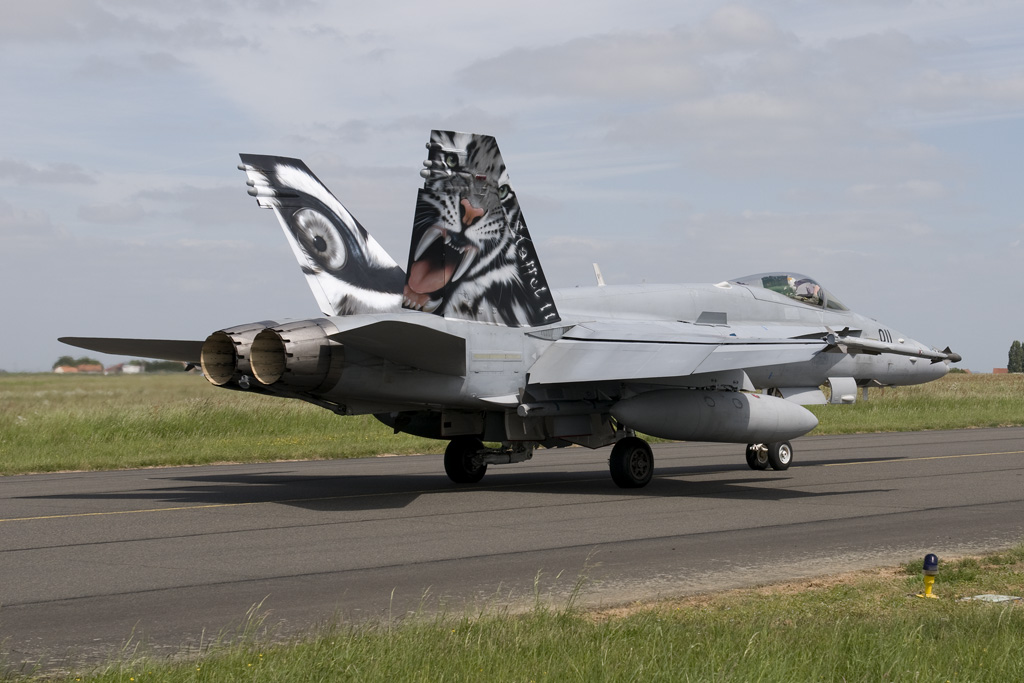 Unlike the Polish, the Czech Air Force's 211.Taktisk Letka from Caslav is now a Full Member. Two of its SAAB JAS-39C Gripens were to be seen in Tiger livery, with 9245 seen centre being a left over from 2010. 9235 seen to the left is the unit's new Tiger. The Swiss Air Force's Fliegerstaffel 11 always has for obvious reasons F/A-18C Hornet J-5011 painted in Tiger livery. The unit's latest offering can be seen to the right.