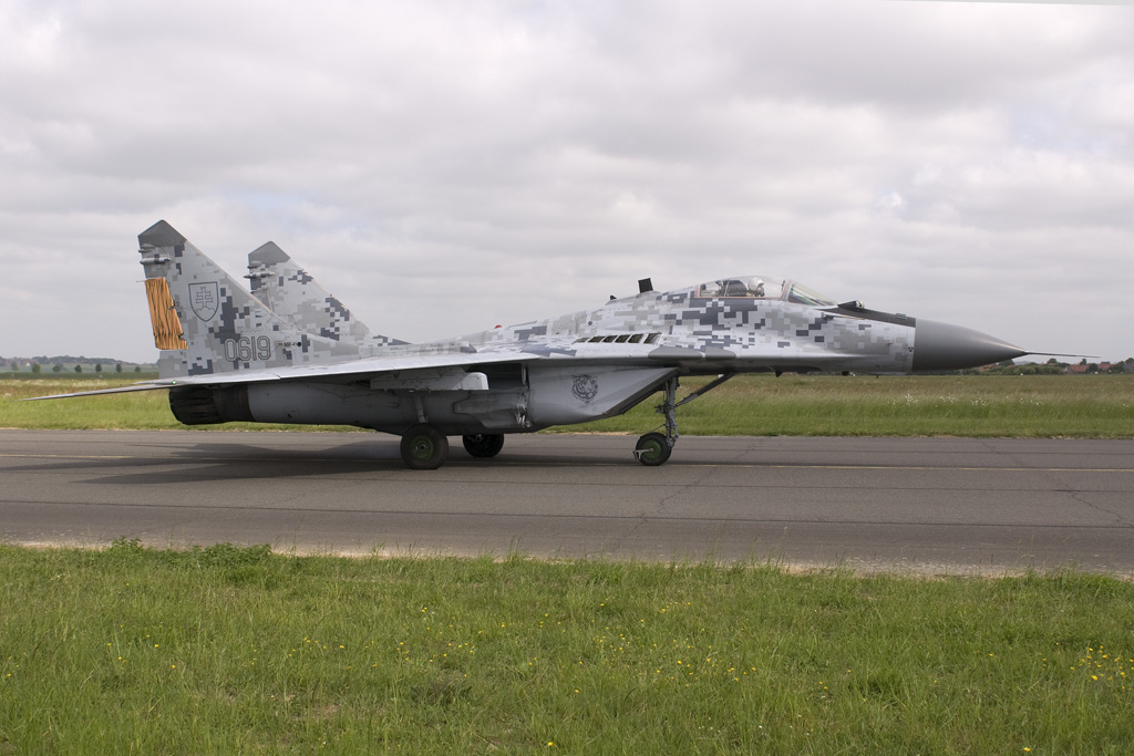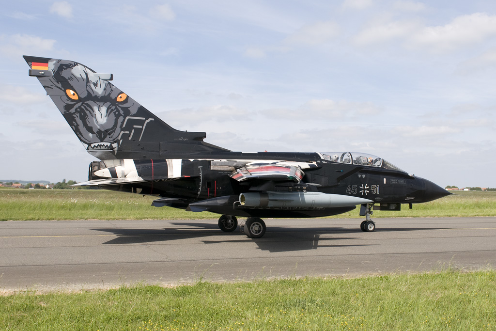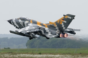 An honorary member is the Slowak Air Force's 1st Fighter Squadron from Sliac. Despite not being in a Tiger livery, MiG.29 0619 looks the part in its pixelated colour scheme. Two German Luftwaffe units are Tiger members, reconnaissance tasked AG 51 from Schleswig-Jagel having painted Tornado 45+51 in a striking panther scheme. Lechfeld's JBG 32 is the other unit. The wing's Tornado ECR 46+29 is seen in take-off to the right.