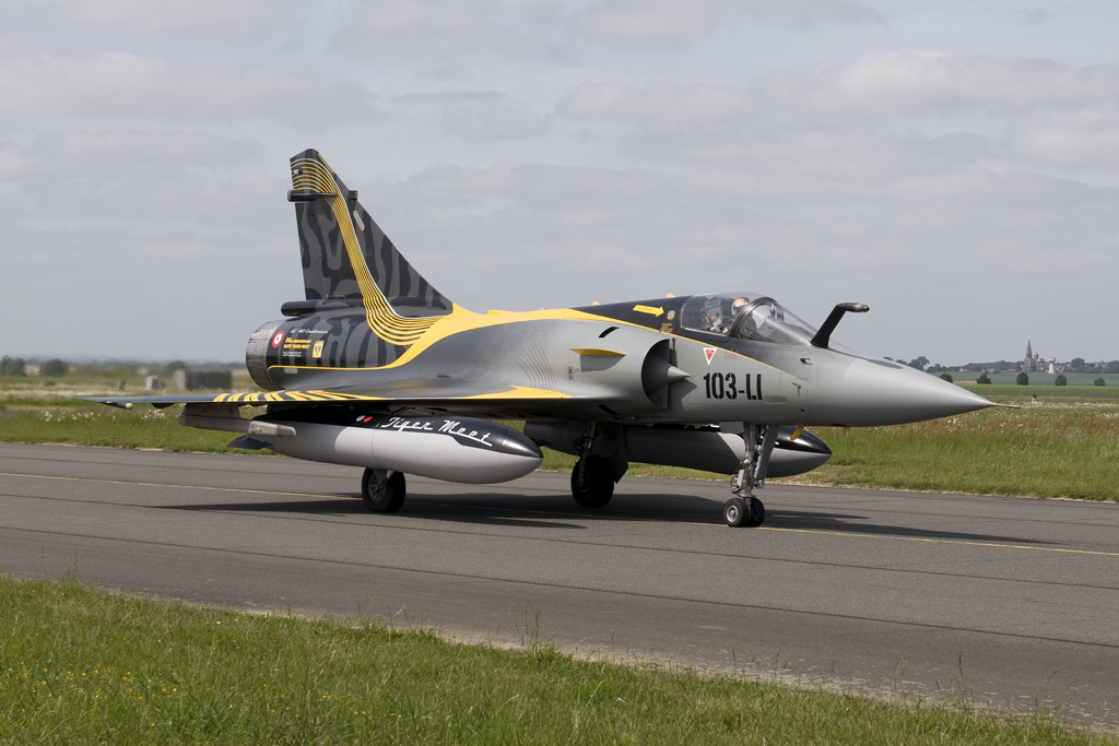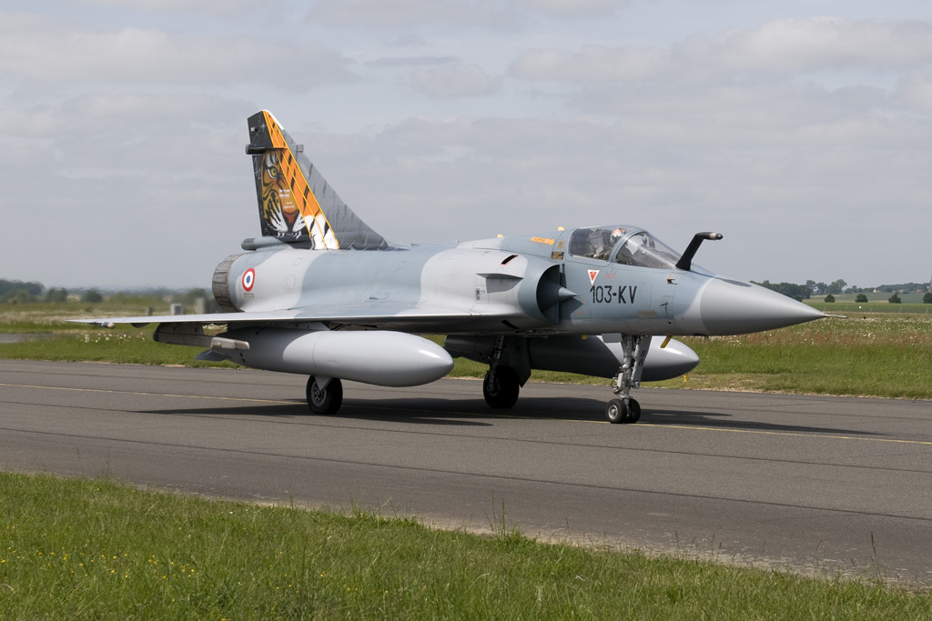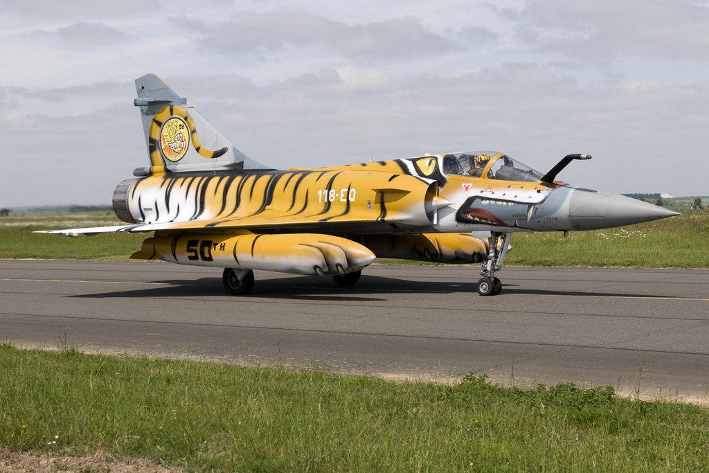 A loyal member of the early years, the French Air Force's EC 1/12 "Cambresis" now faces the same fate. Within EC 1/12 however the Tiger traditions are with component flight SPA 162, which will most likely be embedded with another squadron in order to maintain traditions. The squadron kept up their spirits by decorating two Mirage 2000's in Tiger liveries. The third Mirage to the extreme right is a Mirage 2000-5F from EC 5/330 based at Mont de Marsan. |
