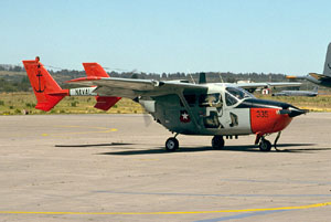 Maritime patrol obviously is the main trade of Aviación Naval. For Chile, this is a particularly ardeous task given the length of the country's coastline. Three types of aircraft share this responsibility. 335 is one of eight Cessna O-2A Super Skymasters procured from the USA. Short range maritime patrol as well as fishery inspection and SAR are the tasks assigned. For the latter role O-2's can be equipped with inflatable and air droppable life rafts. The O-2's are being flown by squadron VC-1 (Vuelo de Cargo) also known as the Escuadrón de Propósitos Generales which also flight light transport missions with the CASA C.212 Aviocar. |