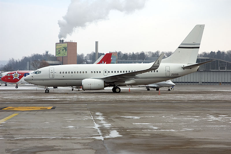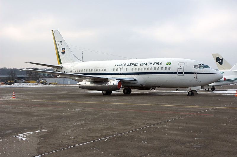 No fewer than two Brazilian Air Force VIP jets were present at Zürich Airport for the 2005 WEF Annual Meeting. These included Boeing 737-2N5 2116. This type, known as VC-96 to the Brazilian Air Force, flies with 1°/1°GTE and is based at Brasilia, the country's capital.