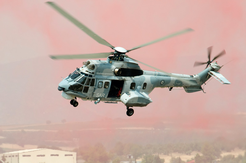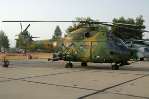 Although the air display contained exclusively Greek types, the static park did show a number of foreign aircraft. One of the most interesting ones being this Romanian built IAR.330 Puma in its SOCAT combat support version. Other NATO partners displayed F-16's as well as Eurofighter Typhoon, Tornado and Mirage 2000D giving the show an international flavour. |
